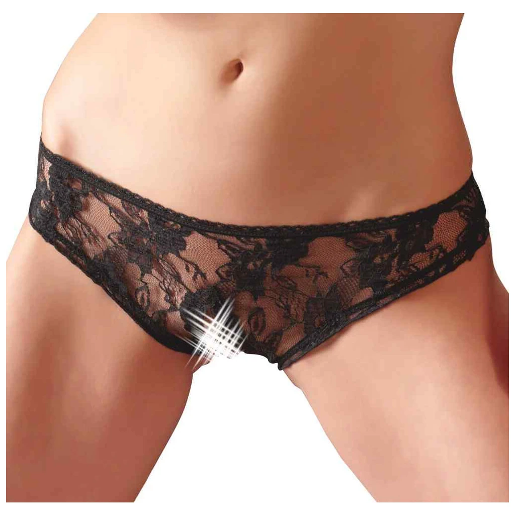 Zarter Slip aus floraler Spitze mit einladend offenem Schritt.